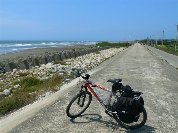 白沙屯的防波堤,風大到差點把腳踏車吹倒