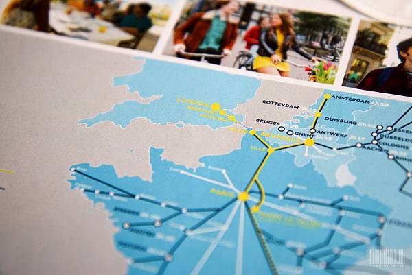 歐洲之星還有出自己的車上雜誌「Metropolitan」,像機上雜誌一樣,以介紹列車服務城市的旅遊文章為主,最後當然還要放一張路網圖。